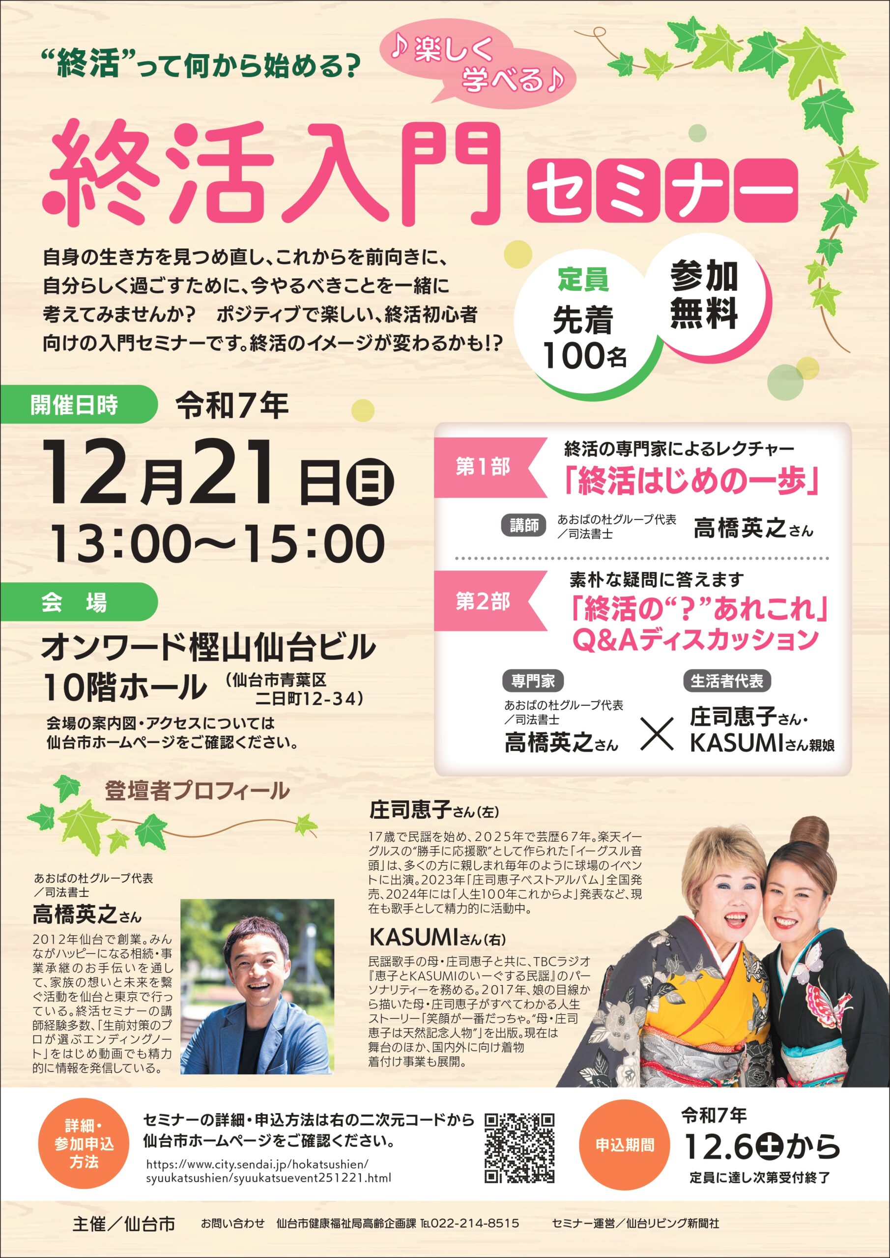 ◇12/21(日)開催◇ 終活入門セミナーのご案内